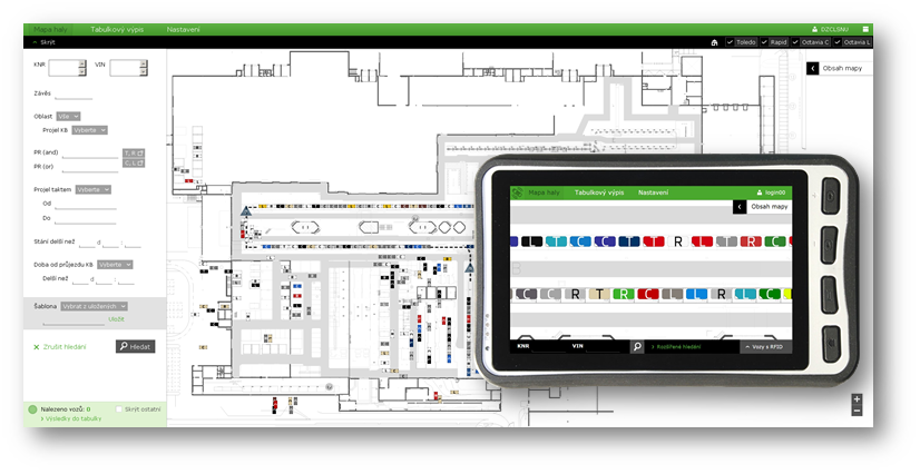 - Okamžitý přehled o pohybu nástrojů, materiálu, výrobků nebo dopravních prostředků.